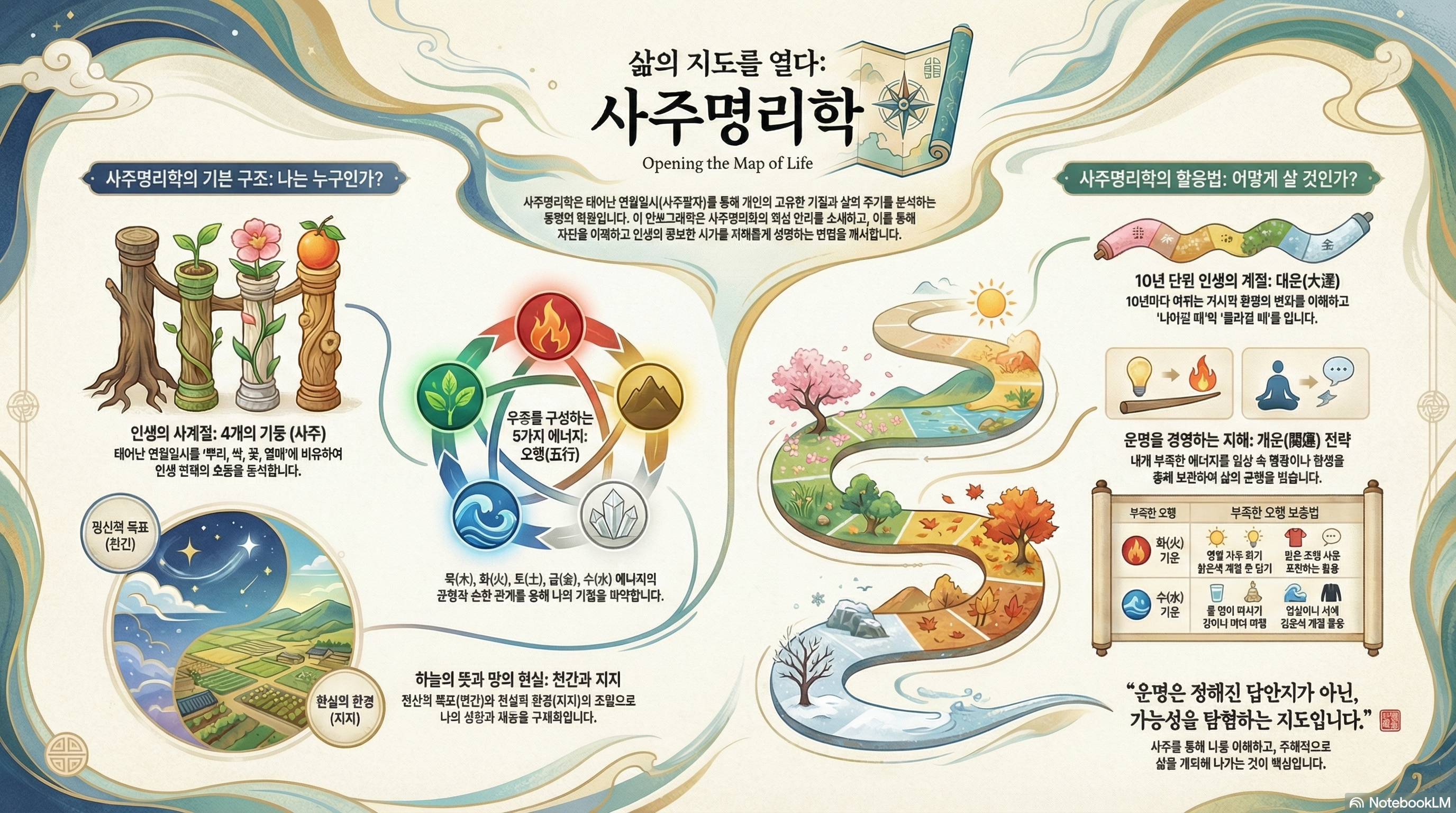 운의 흐름을 바꾸는 에너지 튜닝: 내 사주에 부족한 오행을 채우는 실전 개운법(開運法)
